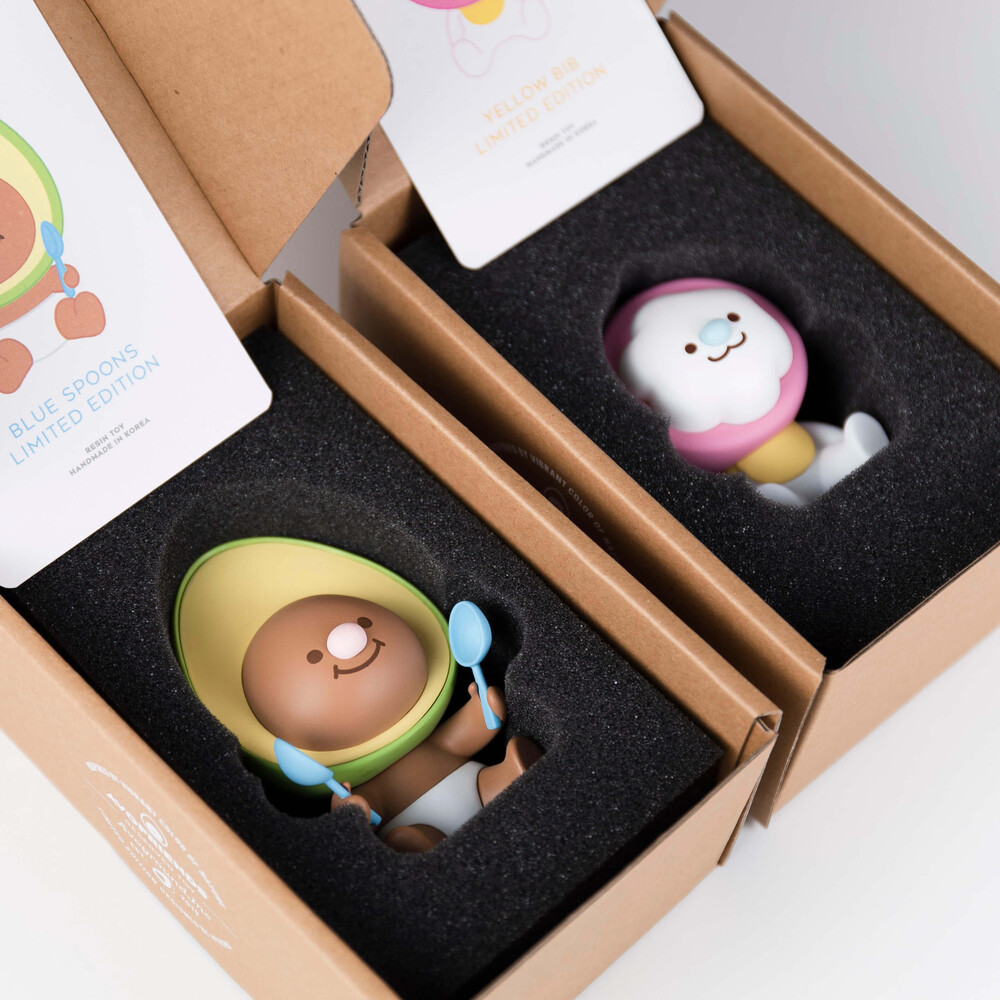 기존 아보와 스티나보다 더 밝은 컬러로 봄의 새싹처럼 푸릇푸릇한 모습을 담았고, 기저귀와 턱받이로 귀여움을 더했습니다. 이번 한정판 레진토이는 국내에서 소량만 생산되어 재입고 예정이 없습니다.